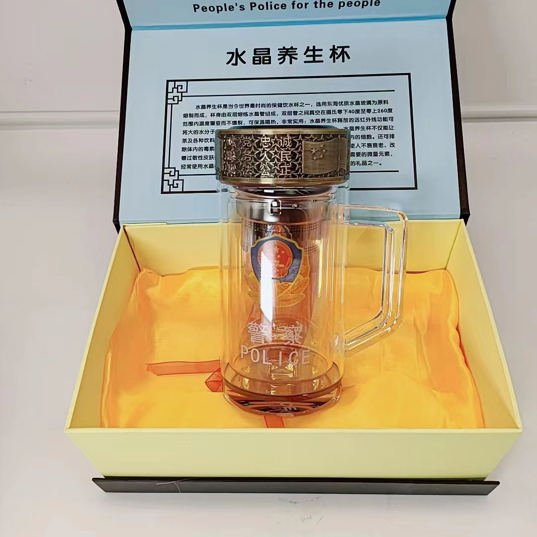 雙層玻璃隔熱,手柄設(shè)計,辦公室專用。禮盒式設(shè)計,送禮自用都有檔次,銅蓋,水晶底座,350毫升容量
