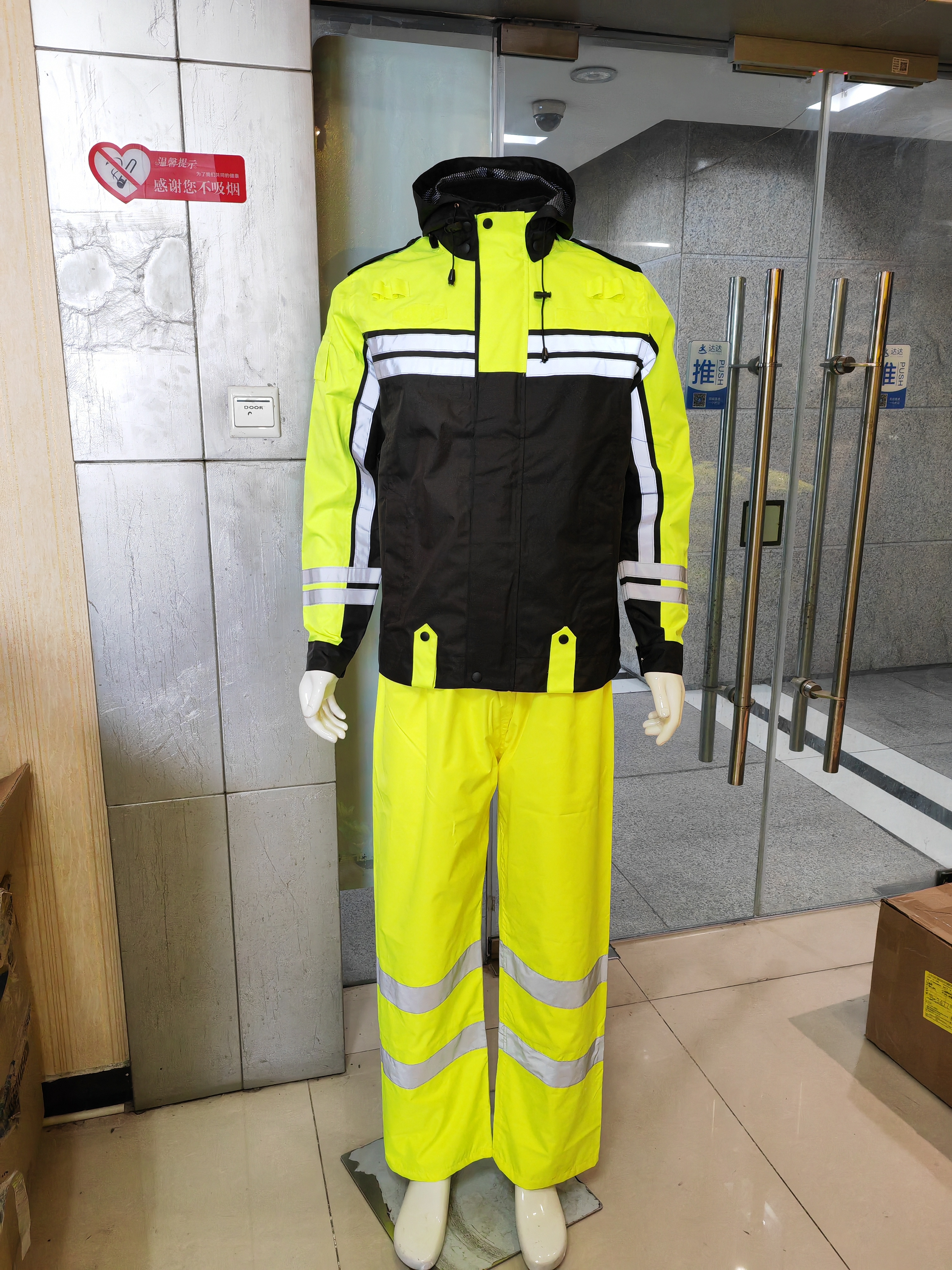 黃黑拼色雨衣