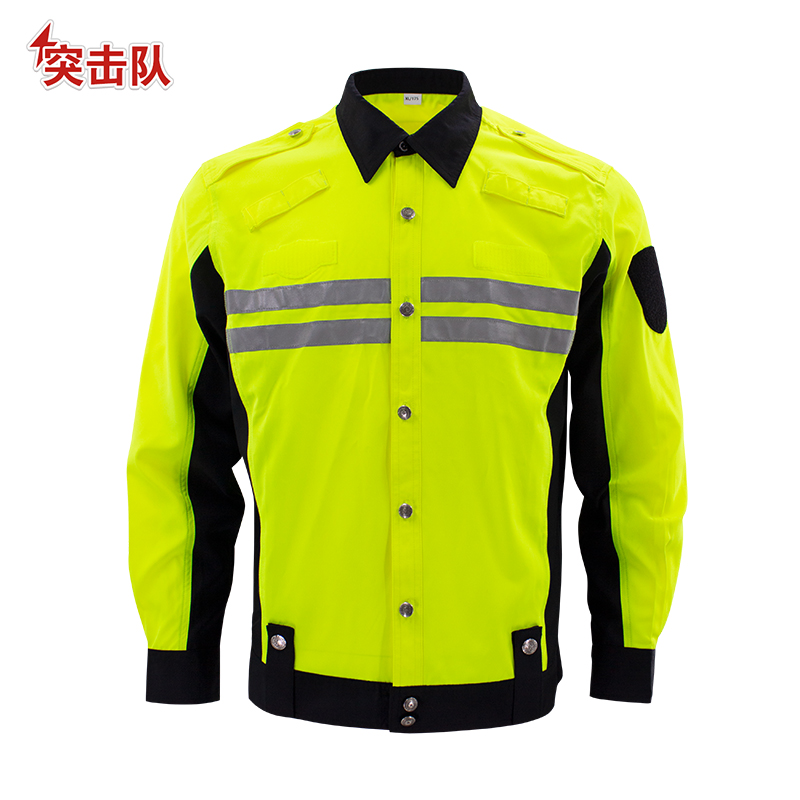 閃電 SD-1850 春秋執(zhí)勤熒光黃反光服交織綢騎行長袖