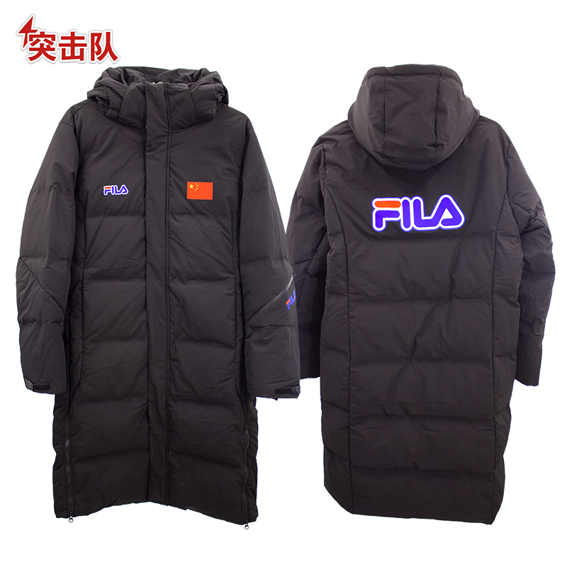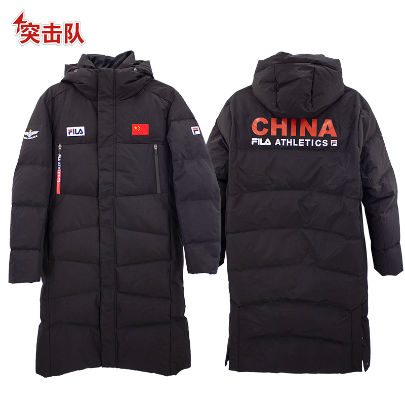斐樂(lè)黑色長(zhǎng)款羽絨服(后背紅色CHINA)防寒保暖外套情侶款